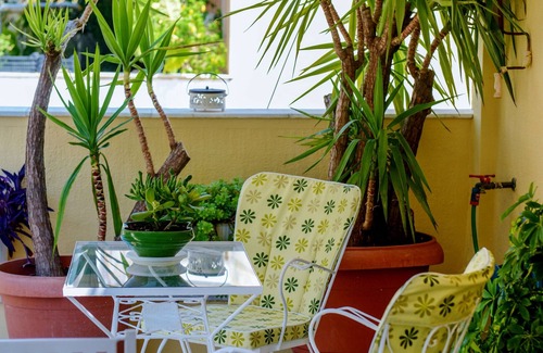 At the back veranda you will find everything you need for the cleaning and the drying out of laundry. Whereas at the front , big and full of greenery veranda you can dine or join your coffee and drink.