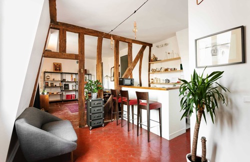 Enjoy staying in the heart of Paris’s Montorgueil Quarter area with this rustic 1-bedroom, 50 square meters apartment located on the 4th floor of a secure residential building WITHOUT an elevator. Self check-in starting from 3:00PM by picking up keys at a nearby shop. Wi-Fi is available, great for both work and leisure. Refundable damage deposit is required, in full accordance with platform's policies.