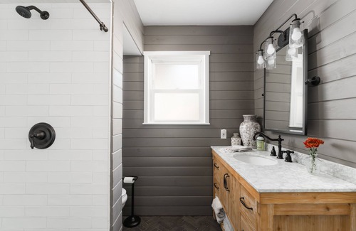 Just steps from the main house, the charming Bunkhouse provides additional accommodations and can be rented separately or alongside the main residence. It includes two bedrooms and a shared bathroom—one room with three twin bunkbeds (sleeping six total), and another with a queen bed and twin bunkbed.