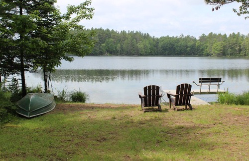 Bluegill Cabin is the quintessential northern Wisconsin cabin; cozy, private, with lots of rustic charm. Situated on nearly 2 acres of land and over 100 feet of lake frontage, there is something for every outdoor enthusiast! The lake is 26 acres of spring-fed clear water; perfect for fishing, swimming, kayaking, floating, or watching the loons, turtles, and otters. This is a no-wake lake and motorized watercraft are prohibited, keeping our water and shoreline clean and pristine! (We provide PFDs, paddles, 4 kayaks, two paddle boards, a row-boat, and floating foam swim mat for your use.) For those looking for big water or water skiing, a boat launch into Fishtrap Lake is about a mile away, along with easy access to many other larger lakes and rivers in the area. Off the water, you will find access to the Chequamegon National Forest right across the street. Hikers and ATV users can access many miles of trail system within minutes of the cabin.