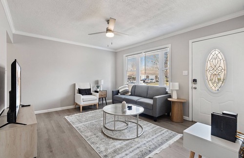 The house has 3 bedrooms with a desk and office chair, perfect for remote work! Additionally, it has a nice updated kitchen and a comfortable living room with a large flat-screen TV!