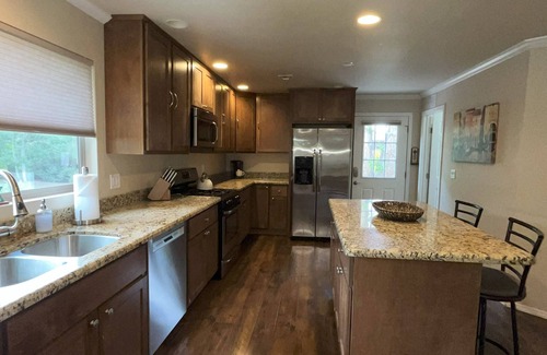 It includes a fully outfitted kitchen with appliances, 3 bedrooms with queen beds in each room, and 2 full bathrooms. The living room and master bedroom have large Smart TVs with access to all your favorite streaming apps to enjoy your downtime while on vacation. Full laundry room amenities are available. The inviting, newly landscaped yard has patio furniture and a propane gas BBQ grill for family/friend gatherings and a built-in horseshoe pit for entertainment. This is one of the cleanest vacation rentals you'll stay at. Just read our reviews and you'll see what all our guests say about how clean and comfortable this home is!