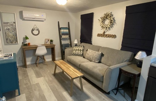 Super cute cozy 1 bedroom house in a quiet neighborhood close to Ivy Tech and only 7 blocks from the Honeywell Center. Updated, modern, and super clean! Washer/dryer on site. Smart tv & internet provided. Ask about discounts for longer stays
