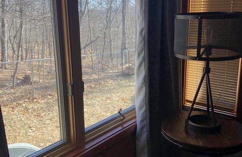 Relax in this CLEAN, COZY and NEWLY furnished lodge. 2 Bedroom/ 2 1/2 baths Sleeps 8 people comfortably with a king in the master, 2 queens in the second bedroom and a queen in the living room(available upon request). (ALL BRAND NEW FURNITURE AND COMFORTABLE MATTRESSES). Open concept with fireplace in the living, dining and kitchen area. 60" inch TV in the living room, 43" TVs in both bedrooms all have internet, FREE WIFI and Netflix(with personal account). The 1st floor deck overlooks state forest which is beautiful during all seasons and surrounds the Shawnee Mountains! The spa room with 2nd floor Balcony is great to get a breath of fresh air, which also overlooks state forest and is beautiful during all seasons! Both the 1st floor deck and 2nd floor balcony are private for miles! Included in your stay is access to indoor Hot tub. We hope you enjoy your stay and join us for years to come!