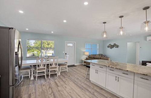 This coastal gem is waiting for your arrival with its brand new heated swimming pool! Fresh, inviting remodeled unit with new kitchen, bath, furniture and appliances. Contains two leather sofas one is a sleeper with a queen-size memory foam mattress. The rear yard is like a little oasis with new patio furniture, pavers, shell, grill and griddle. Enjoy a beverage or meal at several bars/restaurants that are within walking distance and are location is only 4 miles (7minutes) to the beautiful Englewood Beach. You will also have the opportunity to visit two other beaches (Boca Grande & Manasota) about 20 minutes North or South. Its about 2.5 hours to all the parks in Orlando. Bring your kayak! 1/4 mile direct access to Lemon Bay and the area is known as a kayakers paradise. Visit charming downtown Englewood where you can explore local shops, dine at restaurants and visit near my Indian Mound Park. Local planned events are common. This unit features a RV/Boat parking pad. Inside the fence. Message for details. There is also a county recreation center just a mile away with pickleball/basketball courts. The area is also recognized for its charming small-town atmosphere, excellent fishing opportunities, and the annual "Englewood Pioneer Days" celebration, which showcases the community's history and culture. Additionally, the Lemon Bay Playhouse and Stump Pass Beach State Park are popular attractions in the area. Enjoy the peace and tranquility that are just moments from the shoreline!