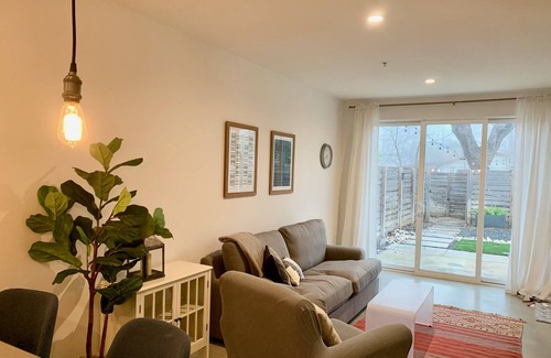 This townhome/condo is super private, and fully fenced with a small yard and patio for enjoying the nice weather! It is walking distance to some of the best restaurants and bars in Austin, and less than a 5 minute drive downtown.