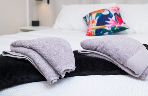 Fresh Towels, linens and standard amenities supplied in bathrooms