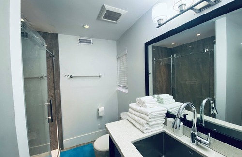 - 1 Bathroom: fully equipped with sink, toilet, and shower. Clean cotton towels, toilet paper, toiletries (shampoo, conditioner, body wash), hair dryer prepared for every guests.