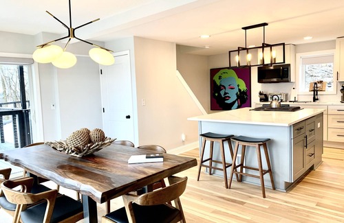 Amazing views, rooftop patio, contemporary design and furnishings are just the beginning for your amazing stay at our cliffside paradise. This architecturally stunning home offers a fully equipped kitchen, two decks to dine and relax on. Beyond its walls, you can visit the nearby Station Square shops and restaurants, Monongahela Incline, Pittsburgh Zoo and PPG Aquarium, Warhol Museum, the Rivers Casino, or watch the Penguins at PPG Arena, Steelers at Heinz Field, and the Pirates at PNC Park