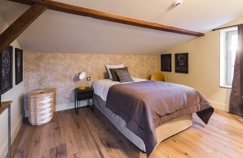 Large attic suite of 56 m2 on the top floor of the hotel with two bedrooms. You will reach by a private staircase from the second floor.
