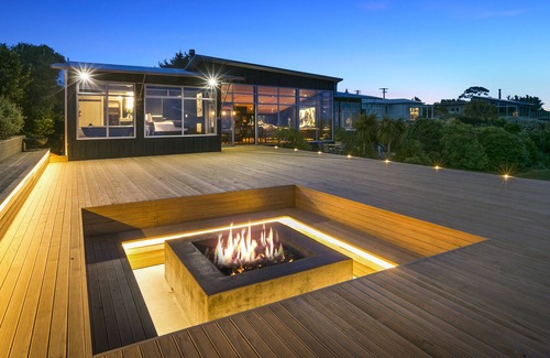 Located in the seaside settlement of Karitane, just on the outskirts of Dunedin is where you will find this stunning holiday home. Thoughtfully decorated with gorgeous New Zealand art and luxury decor, you and your group will find something to marvel at and enjoy in every corner. Show off your cooking prowess in the spacious and fully equipped chefs kitchen, then sit down with your group to enjoy your meal. With floor to ceiling windows in almost every room, the backdrop to your holiday will be sun rises over the water, blue skies and the white sandy beach all at your front door. Cloud 9 retreat sits just behind the bank of the beach, so you have your private access to the beach from the large lawn. A morning stroll, with your cup of your coffee along the beach, is just that easy!