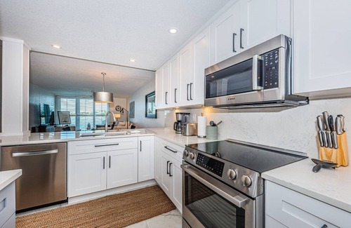 Located on the southernmost tip of St. Petersburg, the island paradise of Isla del Sol, 350 acres of beautifully manicured tropical gardens surrounded by the waters of Boca Ciega Bay, beckons and awaits your arrival in this top-notch 2 bedroom/2 bath Club Bahia condo. The spacious, gourmet kitchen is a dream ~ boasting modern stainless appliances, granite/stone countertops and crisp, white cabinets stocked with an abundance of kitchen essentials. Contemporary furnishings, “beachy” décor, stunning marbled floors, updated baths completed by custom vanities, classic subway-style tile and walk-in showers, flat screen TVs, wireless internet and more give this condo a modern twist. After a full day of sightseeing adventures or fun in the sun on our beautiful Gulf beaches, come home to the peacefulness of the island and relax on the large, brick terrace with family and friends. Enjoy the never-ending activity on the Intracoastal Waterway – sailboats cruising by; shorebirds soaring overhead and dolphins playing in the bay. Be sure to have your camera ready to capture one of Isla’s amazing sunsets behind the world-famous Don Cesar. While walking, jogging or biking along Isla’s quaint Spanish-named streets, which meander through lush gardens surrounded by royal palms, ponds and waterways, you'll find the communities on Isla Del Sol are aptly named for their Spanish architecture and Mediterranean flair. The island also boasts an 18-hole championship golf course managed by The Isla del Sol Yacht and Country Club. Take time to enjoy the sparkling heated pool, rejuvenate in the spa or squeeze-in a quick workout in the clubhouse fitness area. Just minutes away, are Fort DeSoto State Park and Fort DeSoto’s renowned North Beach. Don’t miss out on fresh seafood served in our area's local restaurants. Check out fun and unique shops along our beautiful coastline. Book a fishing charter! Play golf! Go boating! The perfect Florida vacation starts on Isla del Sol!