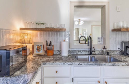 The kitchen comes fully equipped with all standard appliances, a Keurig with a coffee pot, electric kettle, French press, a CrockPot, and more. The dining room table comfortably seats six.