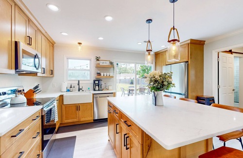 Welcome to this charming home managed by Vacasa North Carolina LLC, located in the beautiful coastal city of Wilmington, NC. This cozy house has been thoughtfully designed to feel like a true home away from home, with special attention given to the inviting kitchen that is perfect for preparing delicious meals and creating lasting memories with loved ones.