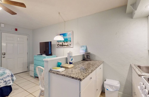 Situated in quaint Pass-A-Grille, this lovely beach retreat offers unbeatable access to the pristine coastline and spectacular views of Gulf sunsets. Designed for ultimate relaxation, your well-equipped studio has a full kitchen and a TV. Spend days sunbathing on the observation deck, which boasts stunning beach views. Ample loungers invite relaxation in the sun. This conveniently located condo offers seamless walkability to restaurants, shops, and attractions while still in a tranquil setting. Thrill-seekers can schedule a parasailing adventure or rent a kayak to experience a different perspective of the Gulf. For even more excitement, downtown is less than 12 miles away.