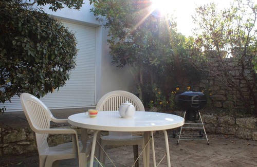 Maison au cœur du village en bordure d’océan et à deux pas du port se composant d'un séjour/ cuisine aménagée et équipée avec un canapé convertible deux couchages (140), d'une chambre pour deux couchages (2x80 pouvant être rapprochés), d'une salle d'eau et d'un WC séparé, et d'une chambre cabine (6m2) avec table à langer et lits superposés (Pour enfant 150x90) attenante à la chambre principale. A l'extérieur, une terrasse et un jardin non-clos avec salon de jardin et barbecue. Place de stationnement.