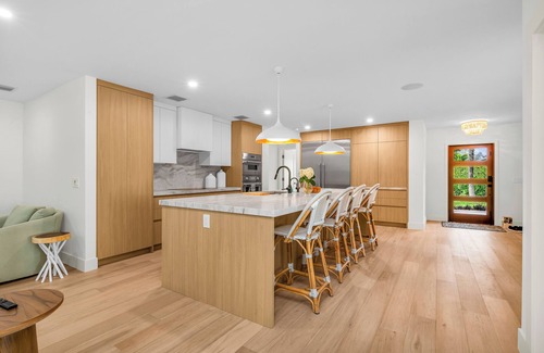 This stylish to stay is perfect for group trips. An entertainer's dream! Stunning primary and guest rooms, office, and detached pool house with a bedroom, kitchenette and arcade game room. Enjoy the heated pool, turf backyard with putting green, fire pit, and covered outdoor living space. Comfortably sleeps 10 (12 with the fold-out couch). A true gem in Delray Beach, come relax in the comfort of this Lake Ida neighborhood home, walk or bike to the beach and Atlantic Avenue.