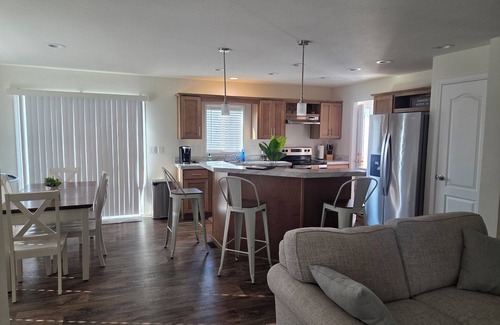 Bring the whole family to this great place with lots of room for fun. For those seeking outdoor adventure, Lakeside might have it all: three lakes, sand dunes, a large forest, and the ocean. Boating, water-skiing, and kayaking on the lake in the morning can transition to off-roading in the dunes in the early afternoon. Close the day with a sunset picnic dinner on the beach, and prepare for the next day’s adventure. New home 3 bedroom two bath with open floor plan located directly on the Lakeside ATV path, ride your ATV just 2 miles to Spine Reel dunes access. This is also conveniently located just 0.3 miles from Ten Mile Lake boat ramp. Bring your ATV and boat for fun in the sun as this house has a 12x73 foot extra-long driveway with RV hookups that provide plenty of parking room for all your recreational toys. Plus renters will have access to the garage and additional parking accessible by the ally. Please note: the dune access is 2.4 miles down a paved road. If your ATV/UTV has paddle tires it is advisable that you trailer our toys to the dune access point.