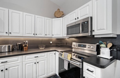 Kitchen: The beautiful kitchen has an island and stands well-equipped with stainless steel appliances, Keurig coffee machine w/carafe and single-cup options, blender, toaster, microwave, electric kettle, rice cooker, an array of pot, pans, utensils, spices and more.