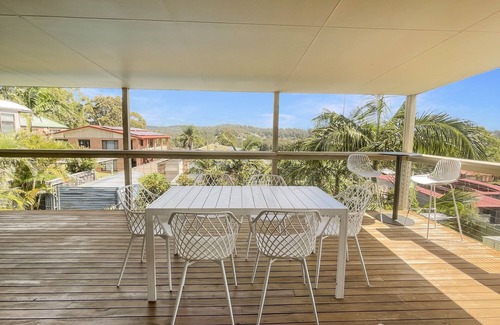 This top-level home in Batehaven offers a serene coastal retreat with stunning outdoor spaces. Featuring two well-appointed bedrooms, including a main bedroom with an ensuite, it provides a comfortable setting for a relaxing getaway. The light-filled living area has a five-seater couch and a TV with free-to-air and Netflix (guests to use their own credentials). The dining space comfortably seats six, leading into a fully equipped kitchen with a gas stovetop and electric oven. Ceiling fans throughout ensure a pleasant breeze, while the expansive verandah invites you to enjoy the outdoors. Guests can access the shared pool and a communal laundry. While parking is available on the lawn at the front of the house, the driveway and garage are reserved for downstairs tenants.