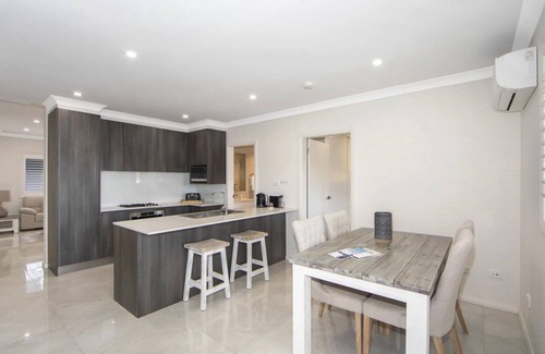 Coastline Retreat features modern fittings throughout, open and bright spaces with natural lighting streaming through and stylish and simple furnishings to relax and enjoy the comforts of home and quite living. With only a 400 metre walk to the beachfront, ferry services, weekend markets, cinemas and Ettalong Beach town centre, you'll welcome the enviable retreat of walking to everything that this beach side haven has to offer. The bedroom features a queen bed and built-ins.