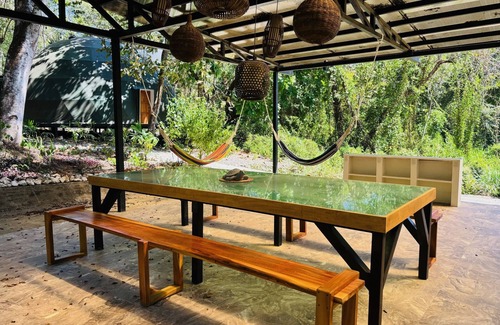 Stay in a unique geodesic dome surrounded by wildlife in the lush jungle, home to howler monkeys. Walking distance to tranquil Playa Organos beach, Tortuga Vida is also a 10 min car ride from the ferry & the quaint town of Paquera, known for its authentic vibe and great restaurants. Our onsite concierge service can help you with booking nearby activities and tours: Isla Tortuga snorkeling, bioluminescence, Curu Wildlife Refuge, horseback riding etc. Reconnect with nature in a unique setting!