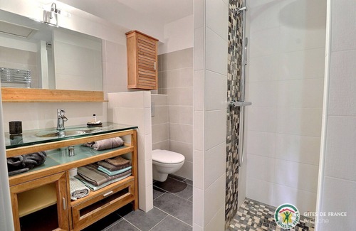 Cocon de Charme Près D'un Lagon Turquoise is located in Labeaume. Cocon de Charme Près D'un Lagon Turquoise provides accommodation, featuring Hot Tub, Laundry, Parking, among other amenities. This Cottage features Hot Tub, Laundry, Parking, to make your stay a comfortable one.