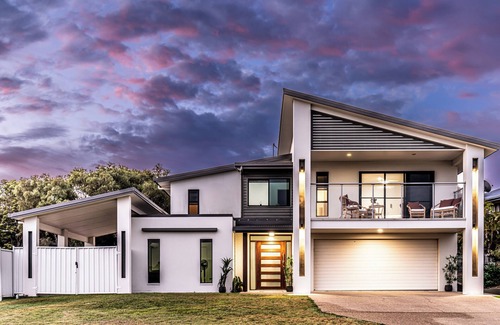 This exquisite home features 4 spacious, fully air-conditioned bedrooms, including a master suite with a private balcony and magnificent island views. Nestled in a peaceful cul-de-sac directly across from the beach, the property borders a National Park and is a short drive from a boat ramp and a leisurely walk to the Seaspray gym and café.