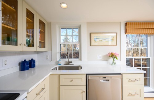 The Cottages On Little Harbor are located in the stunning coastal town of Cohasset, Massachusetts, picturesque and quiet, yet just 25 miles from historic Boston. The property is a tastefully furnished and renovated carriage house with two units in a sought-after neighborhood. Cottage 1 has two bedrooms: one king in master with ensuite bath, and a bedroom with twins and adjoining bath. Cottage 2 has three bedrooms: one king in master with ensuite bath, one with queen bed and one with twins. There is a second full bath.