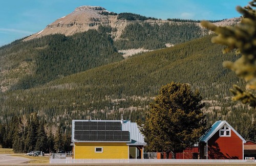 Modern tiny home in the heart of Nordegg, AB—nestled in the Rockies on a golf course with mountain views. Sleeps 4 (1 bedroom + loft), full bath with heated floors, and a well-equipped kitchen (no oven). Enjoy the front porch for sunrises, sunsets, and stargazing. Includes Smart TV, games, books, Bluetooth speaker. Pet-friendly and walkable to town. Shared fire pit area with BBQ and roasting sticks—perfect for cozy mountain nights.
