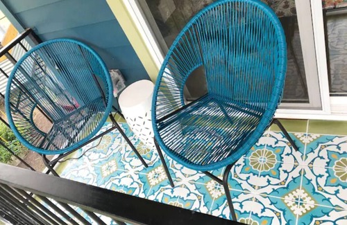 This charming second-story apartment is completely separate from our home and boasts a bedroom with king-size bed, a projector with access to Hulu and Netflix, and laundry. The smart lock allows for self-check-in, and the HVAC is self-contained, so you don't share air with us. It is walking distance to a small grocery store and the area has great dining and take-out options.