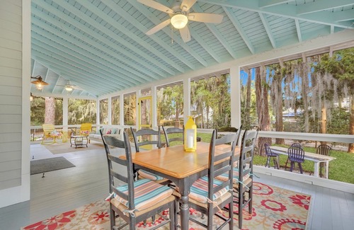 Stay halfway between Tybee and downtown! Enjoy the island life! Gated entry on an acre to run and play! Publix and Walmart are across the expressway. Play games and do puzzles on the back porch! I love family time in the screened in back porch. The beds are comfortable like home, not a hotel. The kitchen has high end finishes that make cooking for the family fun! The location can’t be beat and I feel safe unlike some areas of the city. Whitemarsh island is full of history, the first Girl Scouts summer camp cottage still exists next door! We have found objects left behind from the civil war. Soldiers camped right on this property!