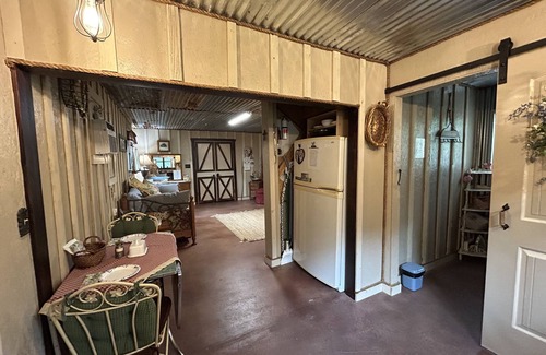 Welcome to our rustic cabin, we refer to as our Barndominium!! NOW open— walking trails!!! Set on 5 wooded oak, pecan, hackberry…acres with wildlife and peaceful surroundings. Enjoy your privacy at this tranquil location. This is a great place for a getaway for 2-4. Whether it be a prayer retreat to enjoy a time of spiritual renewal, or just a break from the hustle and bustle, you will find this peaceful place an amazing spot!