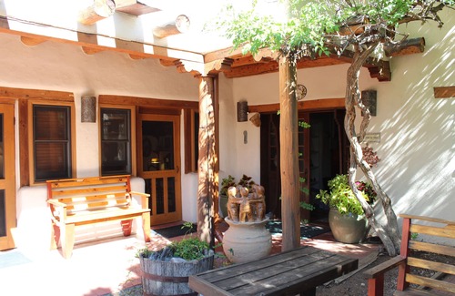 Step into the historic Taos Room at La Posada de Taos and experience the colorful Southwest furnishings, the fine artwork from the Taos and Santa Fe area and the feel of an enchanting and secluded hideaway only two blocks from the Taos Plaza. We are proud to have taken the time to be sure every detail is crafted and tailored for your comfort and enjoyment during your stay. The Taos Room has a private bathe and shower, luxurious queen size bedding, Dish TV, WiFi, refrigerator, complimentary gourmet coffee you brew yourself and an entrance under the portal that looks out over the flowered garden (in season) and Western arbor of the "Big House". The Taos Room sleeps two comfortably, but please remember that the entire La Posada de Taos Compound can accommodate up to 26 guests if you so desire.