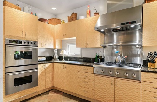 Three separate indoor areas to gather as well as two outdoor patios, spa area and built in grill for bbq’s! A well stocked gourmet kitchen with every gadget you can imagine allows individual or group cooking. We will shop for and pre stock your choice of coffee, tea, milk, creamer, sweetener, fresh fruit, eggs, butter and English muffins or croissants for your first breakfast.