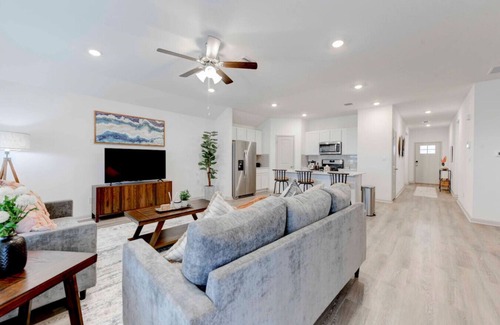This spacious 4-bedroom, 2-bath home in Hutto offers comfort and convenience for families or groups. The master suite features a king bed and en-suite bath, while three additional bedrooms provide plenty of space. Enjoy a fully equipped kitchen, cozy living area, and private backyard perfect for relaxation. With high-speed Wi-Fi, a washer/dryer, and family-friendly amenities, this home is ideal for your next getaway. Just minutes from local attractions and a short drive to Austin!