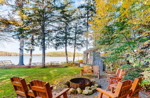 Amenities include free WiFi, four flatscreen TVs, a full-size washer and dryer, a dishwasher, firewood, and a dock. Kayaks are also provided. The larger cities of Rockland and Camden are within a 15-minute drive and Union is an excellent waypoint to start day trips from.
