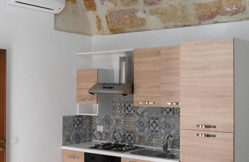 The "Magaggiari" apartment, of 50 square meters, is located on the ground floor and has an open space kitchen / living room, a bedroom, a closet and a bathroom with shower.