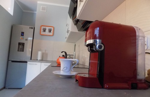 The apartment has a bedroom with double bed, Internet WiFi, coffee table, tallboy, lamps, TV, digital home cinema with blu ray. The kitchen has a cooker, fridge, coffee machine ITALICO, glasses, plates, pans etc. The bathroom has shower, towels, washing machine, hairdryer.