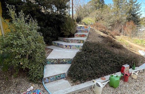 Welcome to your next vacation destination! Enjoy this homey space with your significant other, just the two of you! Or... Bring your family for an adventure! Take a walk around the home and enjoy the mosaic artwork and creativity while soaking in the fresh air in the spacious and roomy yard. This two bedroom, one bath is full of charm. Fully stocked with linens, towels, dishes and silverware. Everything you'll need is here for your next getaway weekend.