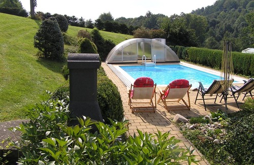 This house is suitable for one family with children or simply for 6 persons. It is perfect with 3 bedrooms and attractive sitting room. Everything from World Wide Web is available by a computer with ADSL internet access and 17' LCD screen. Especially the private magnificent big swimming pool (8 x 4 meters) with terrace offers absolutely enjoyment and relaxation. Inside the house you find an equipped kitchen, 2 toilet, bathroom with bath tub and sunny-side terrace outside. Place for parking outside is available. Not only in Summer, in spring, autumn and winter as well, you will be satisfied. We do not hide any costs out of the showed price, you see total price for your stay. Only pets are not allowed, because the interior and garden are valuable.