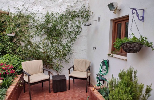We have a superb kitchen with lots of prep space and full size fridge/freezer for all those essentials, and just off the kitchen is our gorgeous traditional Andalucian patio with inglenook seating area plus other seating areas and raised beds with flowers and herbs. The sitting room is large and we provide books for our guests as well as TV and DVD. We have high speed broadband so the house is ideal for digital nomads. For cosy winter nights there's a log burning stove in the sitting room. Set over two floors there aren't too many stairs and it's a modern marble staircase with handrail. All three bedrooms are a good size and two have fitted wardrobes. There's a family bathroom as well as an ensuite bedroom. As the house is in the historic part of town and near to some of the oldest buildings in the town the tour groups do pass by. The local church is also close-by so you will hear church bells. Parking is on-street and first served, there are no allocated parking spaces. Guests might prefer to park by the town hall where the road is wider and walk a few minutes to the house.