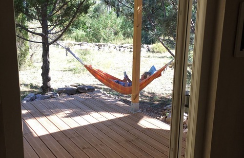- two bedrooms, 1 room with a double bed (140x200) and 1 room with two single beds (80x200). These rooms are separate from each other, on either side of the chalet and both have a ceiling fan. There are also electric blankets and radiators for the days in the year that it is a little cooler;