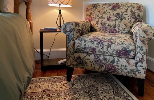 A beautiful and comfortable well-appointed apartment with private entrance in the heart of historic Fredericksburg, Virginia. This fully-updated historic home retains a lot of its original character, and is equipped with everything needed for an extended stay, including a fully-stocked kitchen for food prep and cooking, toiletries, cleaning supplies, fresh towels and linens, a couple of laundry pods to get you started, a work space, Roku 42" TV, and high-speed WiFi. Queen bed has down comforter, room-darkening curtains, comfortable chair for reading, ceiling fan for comfort in addition to central air/heating, and walk-in closet, and is next to the full bathroom. Living Room also has a ceiling fan and is awash in beautiful afternoon light, and the front porch with rocking chairs is a great place to relax with a book, cup of coffee, or a glass of wine. This apartment is located on the 2nd floor and is accessible by stairs. PLEASE NOTE: Preference is given to requests for 30+ day rental period. Quiet hours are between 10pm and 7am.