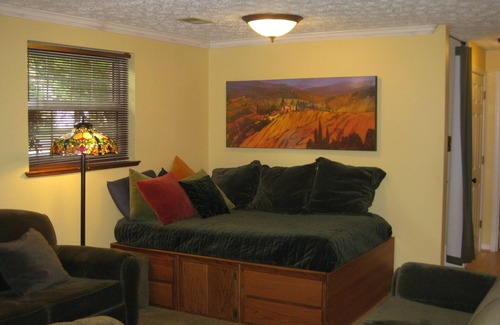 My home is peaceful and comfortable, and is located in a safe and quiet neighborhood. You will have the entire lower level of my home, with no shared or common areas. There is one very large bedroom with a queen & twin, and the spacious family room has a double bed which is also great for lounging and watching movies. Both rooms have TVs with FIOS and Netflix. There is a mini-fridge, microwave, and a Keurig coffee maker (no kitchen). I supply coffee, decaf, teas, water, paper plates, cups and basic utensils. Nearby is the Reston & Dulles Town Centers, the Air & Space Museum, & the WO&D Trail (the Trail is accessible from my neighborhood). If you are traveling by bike, you may store them in my garage. A little further out is our outstanding wine country, outlet shopping & Tysons. I am 6 miles from the Wiehle Metro stop (on the Silver Line), and about 25 miles into the District. I'm conveniently located 3 miles north of Dulles, ~1 mile off of Rt. 28. All the major commuting routes are easily accessible. You will be comfortable and welcome here.