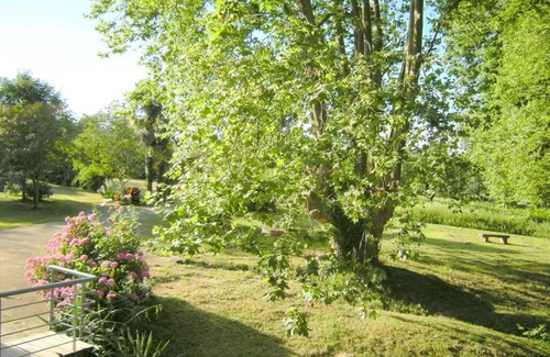 Moulin d’Ibure offers plenty space to various holiday makers: couples and small families enjoy it as much as bigger or two families or friends who like to spend their vacation together! The bright cosy rooms are furnished tastefully and comfortably, wonderful places to retire not only at night time. In the kitchen you find everything to prepare a good meal and then relish it at a nicely laid table, inside or outside. The vast natural garden impresses with its mighty old plane trees, amply flowered bushes, subtropical plants and large meadows. Here you can take a sunbath, quietly read a book but also play badminton or volley. Especially our small guests adore discovering flora and fauna here and enjoy splashing around in the nearby rivulet Lihoury, when the water is low in summer. The large property is bordered by the rivulet, a copse and a high laurel hedge.