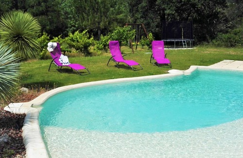 Beautiful villa with swimming pool set in a landscaped garden, with a large plancha for grilling, a trampoline with safety net and swings for children, between vineyards and scrubland.
