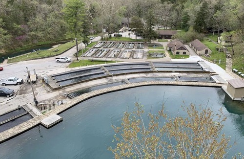 Cabin 10 offers a little something more for larger families. This cabin has 2 queen beds and a kid-o-bunk. Kid-o-bunk is cots for kids (100lbs or less per cot) in a bunk bed style. It has a full sized kitchen for cooking or baking in. All pots and pans and dishes and utensils are provided. It also offers a large pantry to store your food and any paper products you bring. Your cabin also comes with an over-sized shower and all linens are provided. Enjoy the flat screen smart TV so you can watch any of your streaming services you subscribe to at home or watch TV with Dish Satellite. We have also updated the way you stay cool or warm with a new mini-split ac/heater. This cabin is close to the playground, pavilion, outdoor grills, fire pits and horseshoe pits. The pool is just a few steps away. This cabin is across the street from the Cassville Golf Club and just down the road from the Cassville Aquatic Park and Beebe's Water Slide. You are conveniently located just 3 miles from Roaring River State Park where you can enjoy the best trout fishing, hiking trails and beautiful scenery all around you. Many of our guest take a day trip to Eureka Springs that is just 30 minutes from us. There you can enjoy unique gift shops and you will not want to miss The Great Passion Play while you are there! Come and stay with us for your next vacation or weekend getaway!
