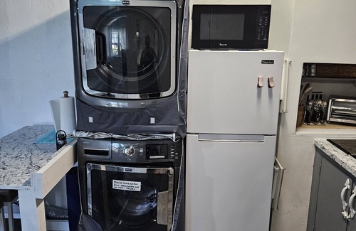 Private entrance, King size bed, private bathroom, Full size fridge, washer & dryer, Full size microwave! Gas stove.
