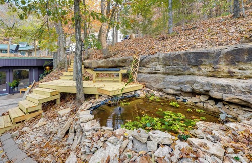 Live the cozy forest life in the rolling Ozark countryside at ‘Underhill.’ Built into the side of a cave near Beaver Lake, this Garfield, AR, vacation rental in Lost Bridge Village offers furnished lookout spots and room for your boat trailer! When you aren’t grilling or enjoying the community amenities, dim the lights and have a vibey soak in this 1-bath studio.